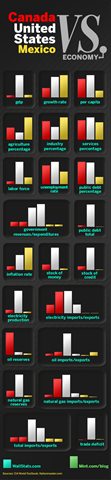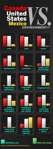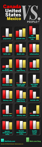 Component comparisons of North America’s economies, environment, people, and military, from Mint.