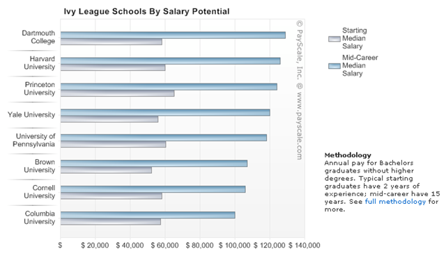 NYT’s Economix blog noticed payscale.com’s dataset of college grad salaries. Some interesting charts there, and since they make the raw data available, we’ll probably see more.